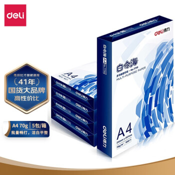 得力(deli)白令海 A4 70g 雙面打印紙 高性價(jià)比復(fù)印紙 草稿紙 500張/包 5包1箱(整箱2500張)